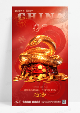 色背景金色简约蛇年吉祥如意大吉大利红背景手机宣传海报