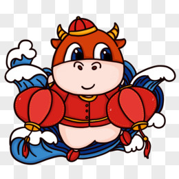 卡通手绘虎年吉祥物拿灯笼形象元素
