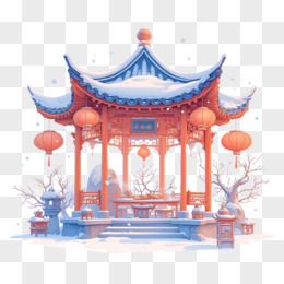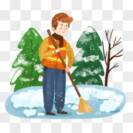 手绘卡通环卫工人冬天扫雪场景插画免抠元素