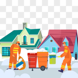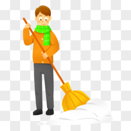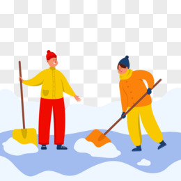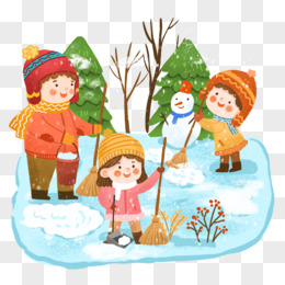 手绘卡通小伙伴扫雪场景插画免抠元素