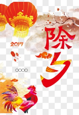 除夕年夜饭艺术字元素