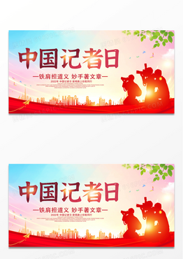 红色简约大气118中国记者日展板设计