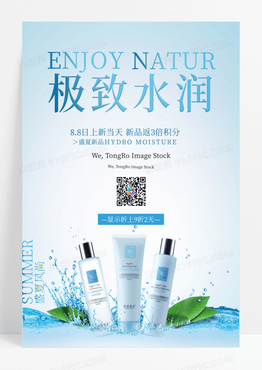 创意大气简约极致水润化妆品海报