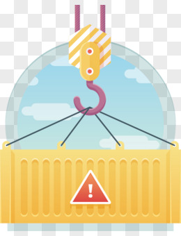 平面插画塔吊正在吊装集装箱到货车上免抠元素