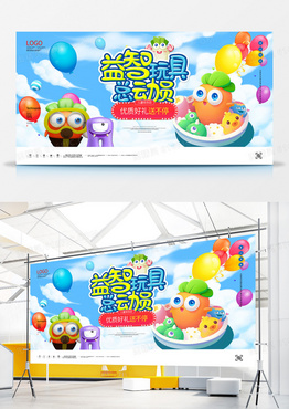 益智玩具总动员创意宣传卡通展板模板设计