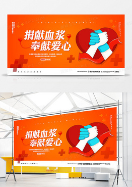红色简约疫情防控捐献血浆奉献爱心公益宣传展板设计