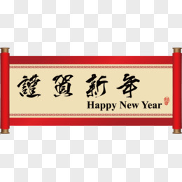一组卡通国潮风春节套图之新年卷轴免抠元素