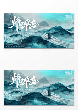 蓝色古风插画卷轴风格师恩难忘感恩教师节宣传展板
