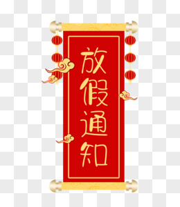 红色喜庆卷轴放假通知边框
