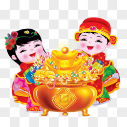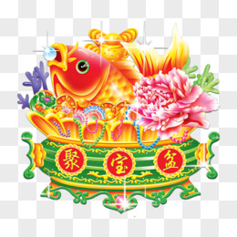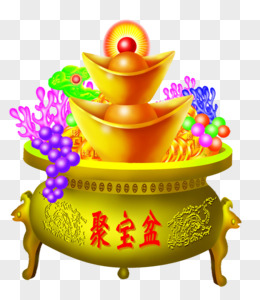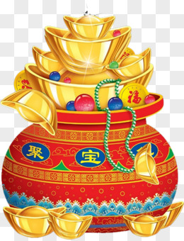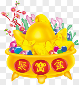 创意卡通蓝色喜庆鼠年聚宝盆元素