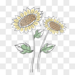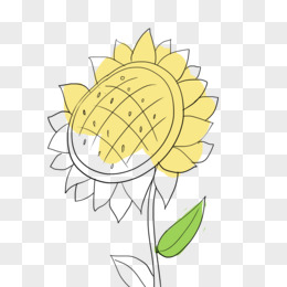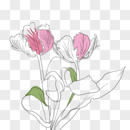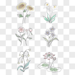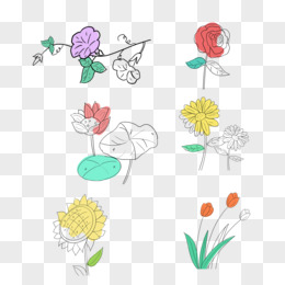 一组手绘卡通花卉局部晕染线稿免抠元素