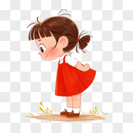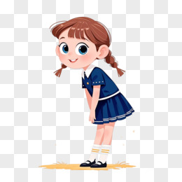 卡通插画小女孩鞠躬问好免抠元素