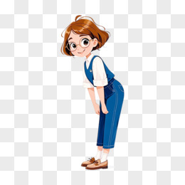 卡通风女人鞠躬问好免抠元素
