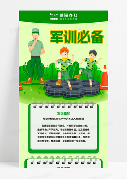 简约大气迷彩军绿军训必备UI手机宣传海报开学军训