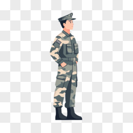 卡通穿迷彩服戴头盔拿着枪的陆军军人形象免抠元素