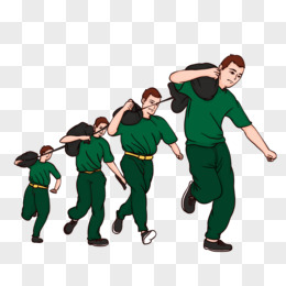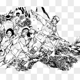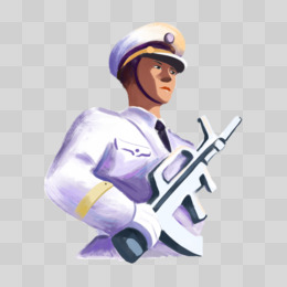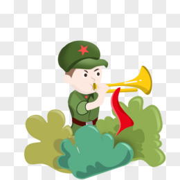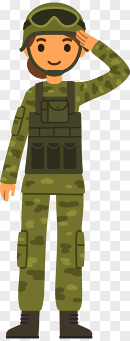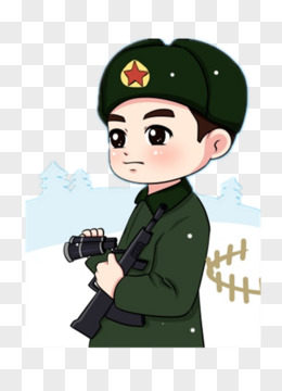 卡通手绘陆军军人和国旗一起合影免抠元素