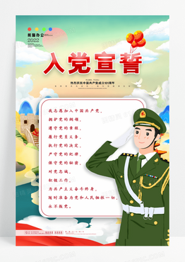 手绘卡通军人在党旗下宣誓免抠元素素材