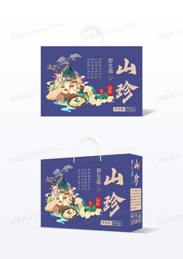 紫色国潮版蘑菇菌子紫色礼盒设计