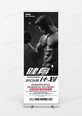 蓝色线条一个男子在举哑铃线稿免抠元素