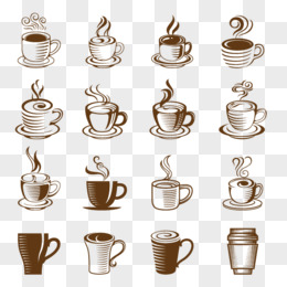 早餐咖啡杯会议休息购物茶旅行图标集,第一部分