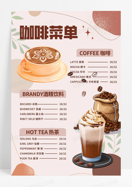 咖啡菜单莫兰迪色系卡通插画餐饮美食海报设计