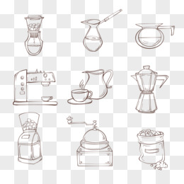 插画风格咖啡冲咖啡咖啡机免抠元素