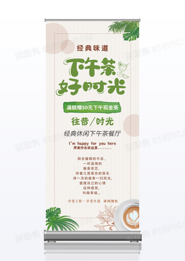 水彩手绘清新下午茶咖啡厅甜品店展架