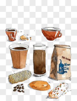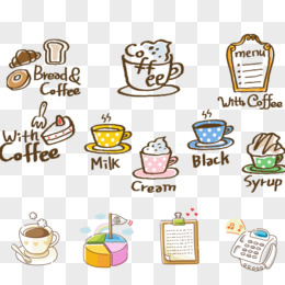 卡通手绘奶茶杯甜点蛋糕插画元素