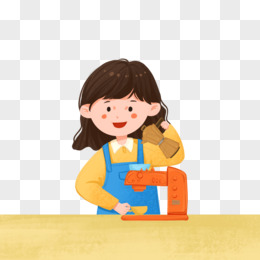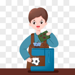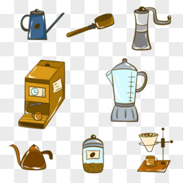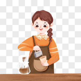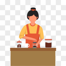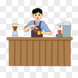 卡通手绘男店员使用咖啡机制作咖啡元素