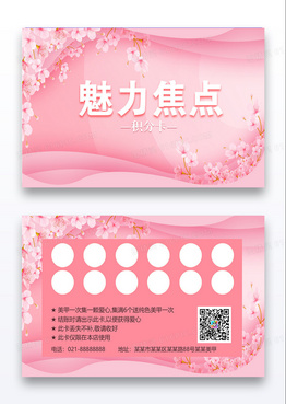 粉色清新卡通玫瑰花魅力焦点美甲积分卡