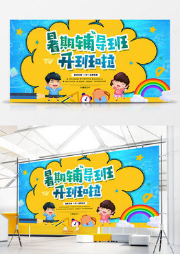 创意卡通暑假辅导班开班啦招生宣传展板