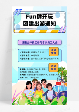 通用扁平风团建活动通知手机海报团建手机宣传海报