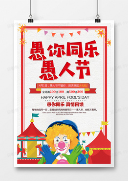 卡通手绘愚人节快乐儿童和小丑玩耍素材