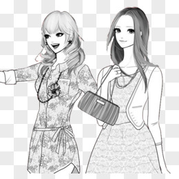 手绘卡通女青年免抠元素