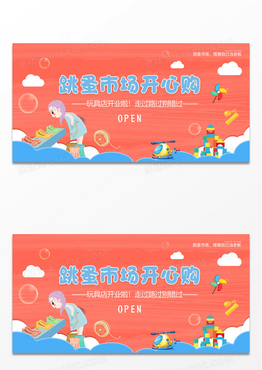 蓝色手绘卡通跳蚤市场开心购展板