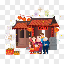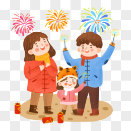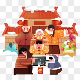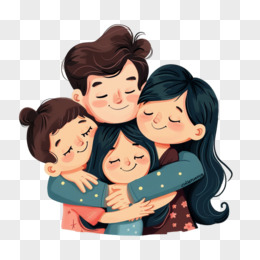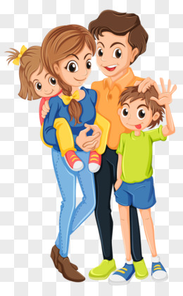手绘插画风一家四口野外扎帐篷露营开心合影元素