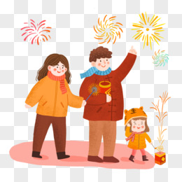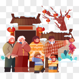 创意手绘点灯笼家人团圆赏月开心团聚素材