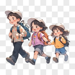 背着书包准备去上学的可爱卡通小学生