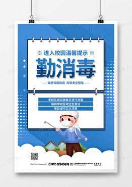 手绘卡通戴口罩的学生的开学防疫小课堂素材
