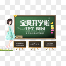 卡通开学季课室黑板免抠元素