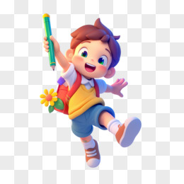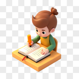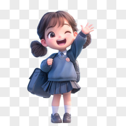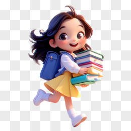 3D卡通一个背书包的女学生搬着一摞书免抠元素