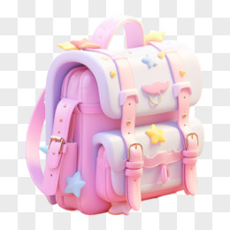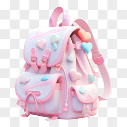 3D粉色可爱卡通书包元素