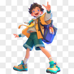 3D可爱男孩上学免抠元素