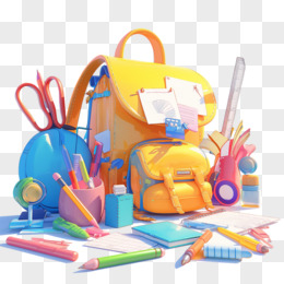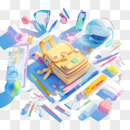 一组立体膨胀风教育教学学生相关免抠图标合集之书包元素