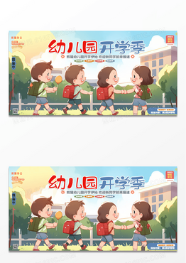 简约卡通创意幼儿园开学季招生宣传展板AI