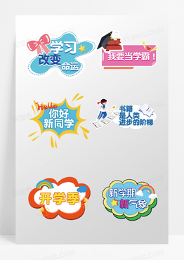 一组矢量风开学新学期上学手举牌气泡框套图系列六素材