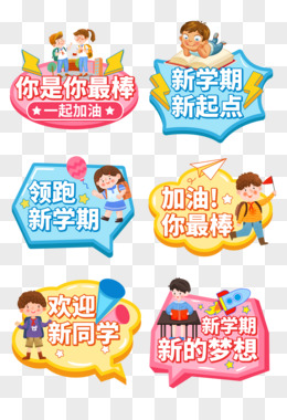 一组矢量风开学新学期上学手举牌气泡框套图系列一素材