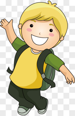 在上学路上的背着书包和小伙伴打招呼的小男孩