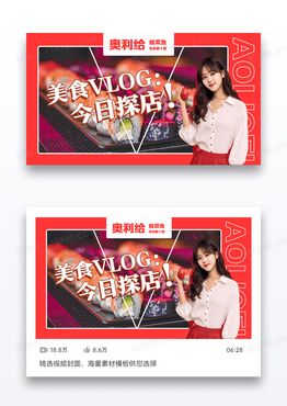 美食VLOG探店抖音视频封面人物推荐面食设计