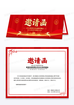 中式兔年红色商务简约邀请函开业典礼邀请函开业邀请函